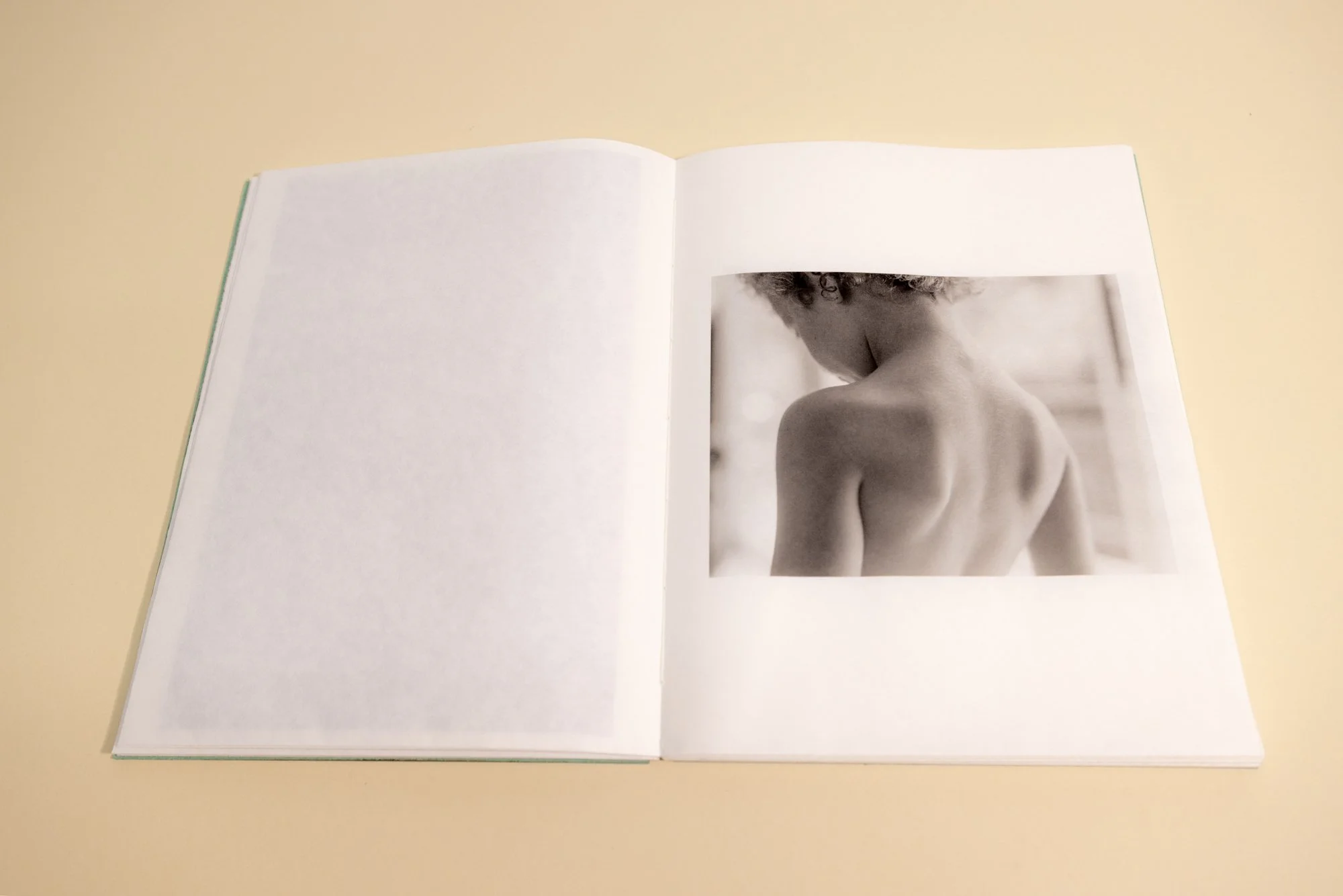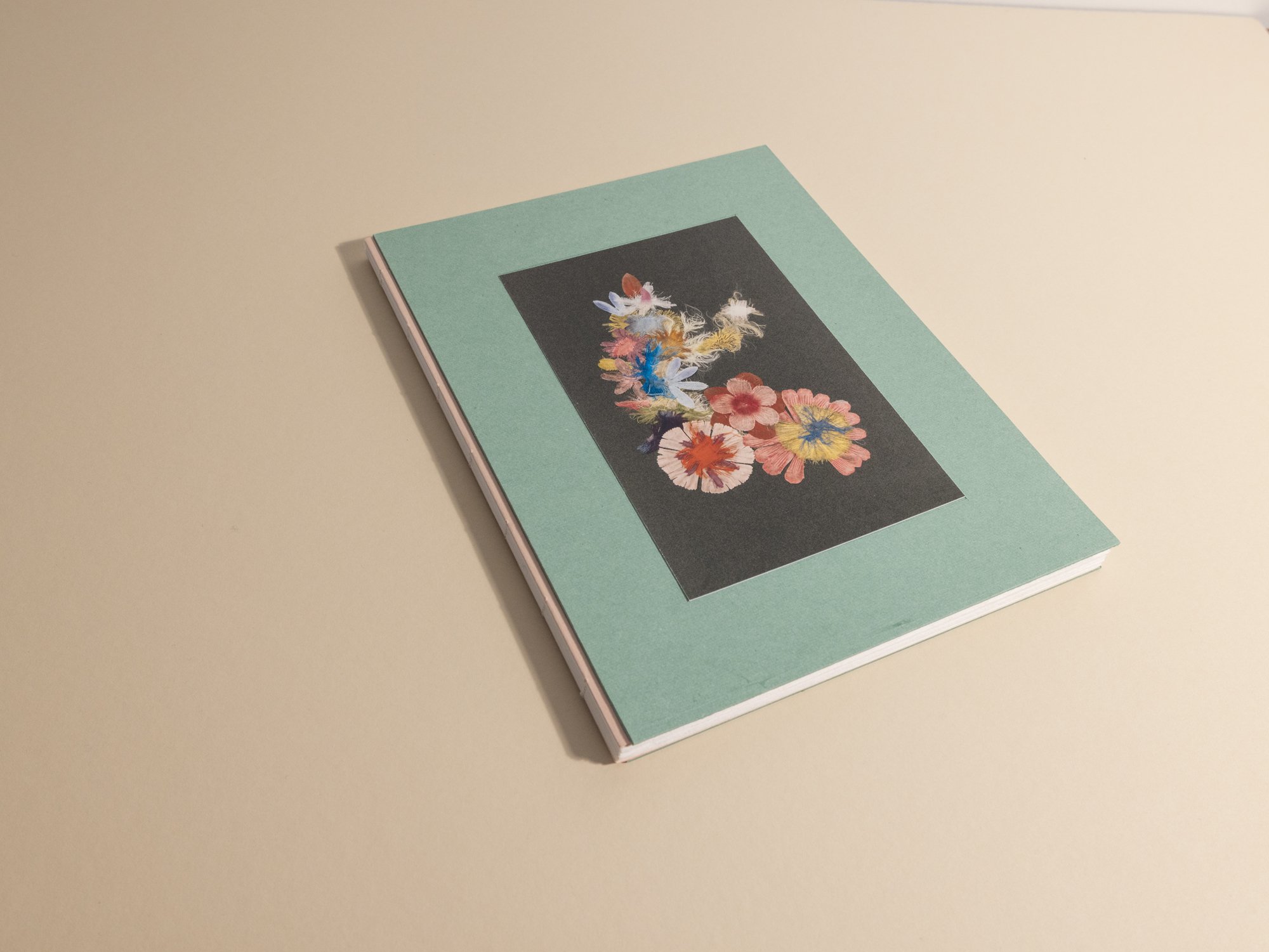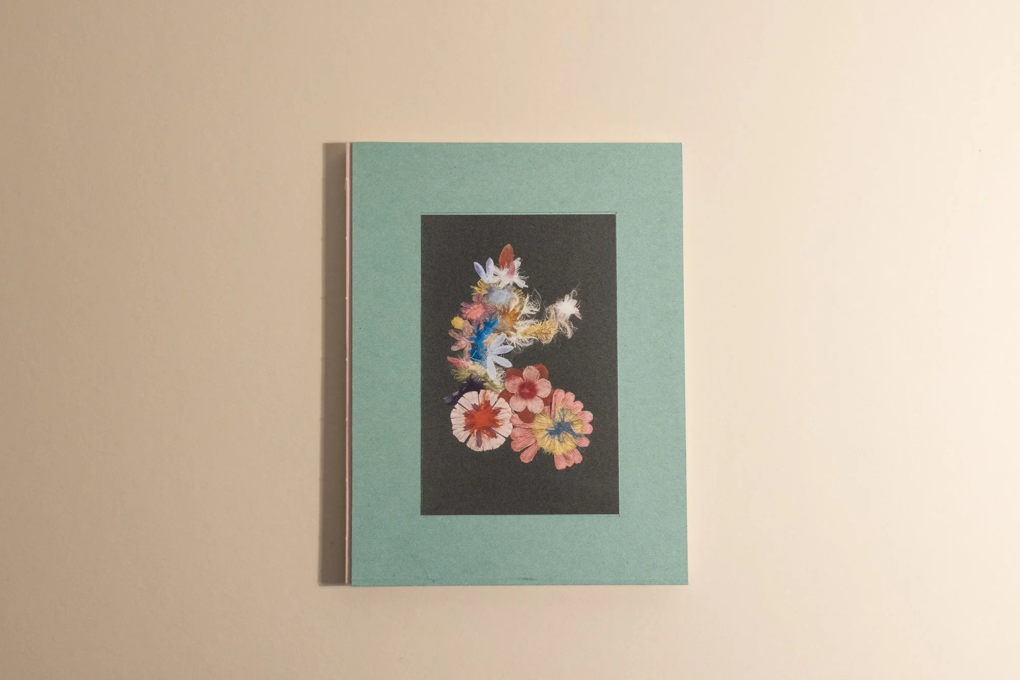 Detached color plates of collaged petals are tucked into the folds throughout the book, barely discernible through the photographic images printed on thin, transparent pages. I realize they may go unnoticed, but when found, they might mimic the delight of stumbling upon an object holding a patina of entropy, grief, and sunshine.
